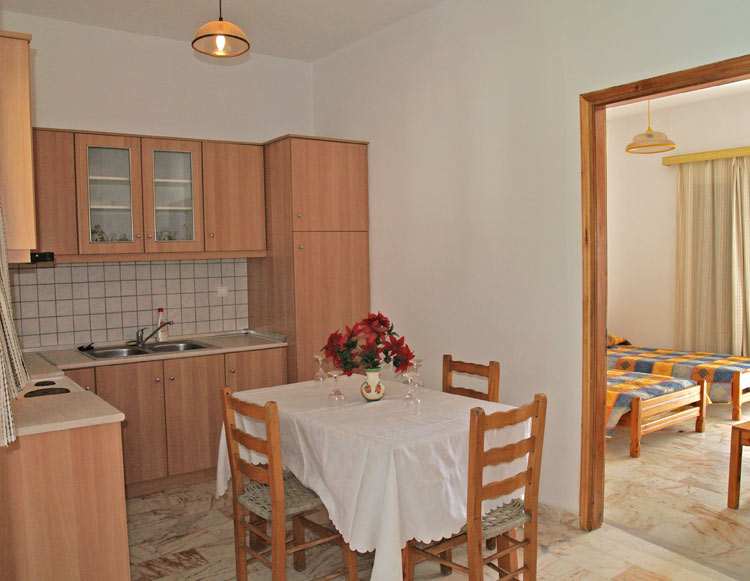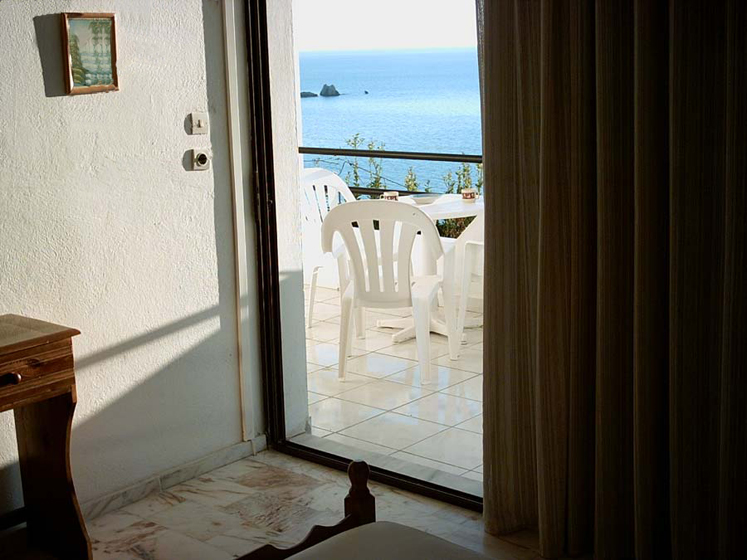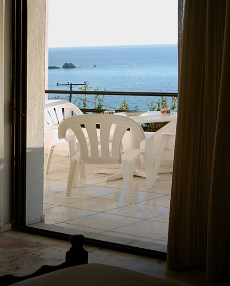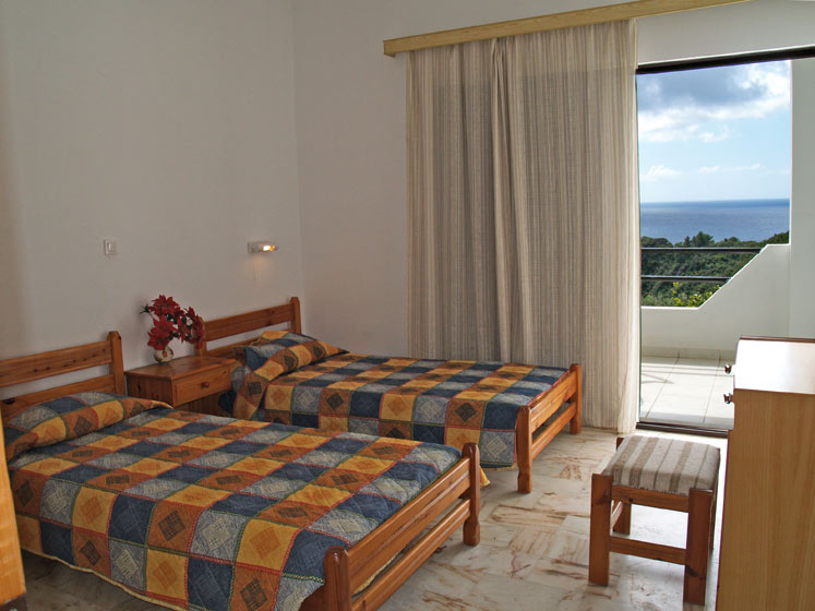 2 Zimmer APPARTEMENTS: Zwei getrennte Schlafzimmer, eines davon mit grossem Bett, das andere mit 2 getr. Betten, ca. 52 qm. modern eingerichtet, Sat-TV, Klimaanlage. Separate, grosse, gut ausgestattete Essküche (Elektroherd, Kühlschrank, Kaffemaschine, grosser Tisch, Stühle, etc. Grosses Bad, (Dusche/Badewanne/WC) Grosse Terrasse mit Tisch und Stühlen und phantastischem Meerblick.